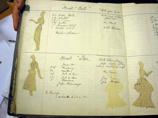 | Bocetos originales con especificaciones sobre el tipo de tela y el consumo que tienen las piezas que componen el New Look. |