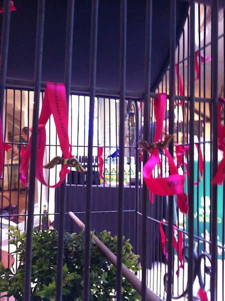 Decoramos todo con decenas de botellas de champagne etiquetadas con la marca La Condesa y regalamos pulseritas y pines hechos con nuestra emblemática cinta color magenta 100%.